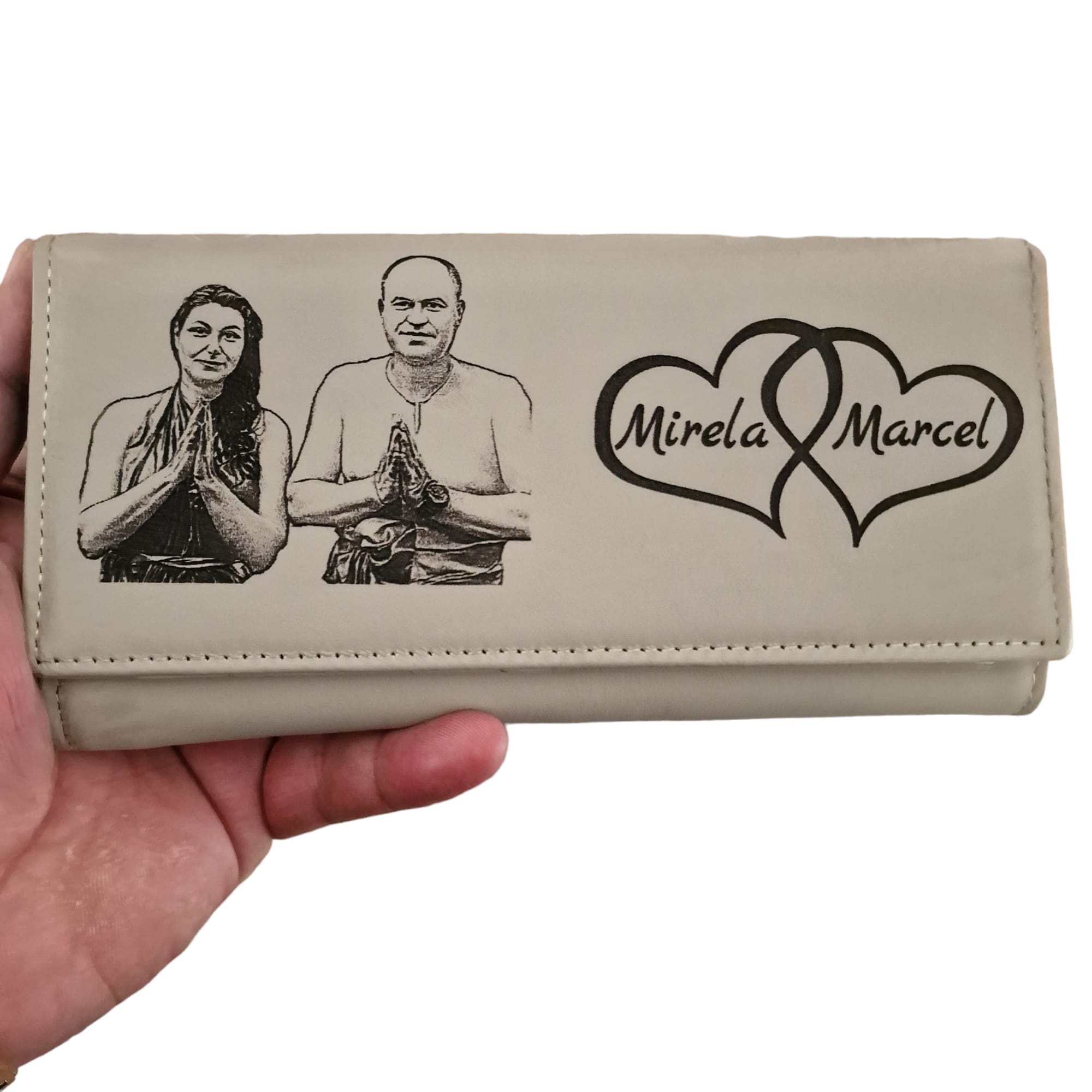 Portofel Dama Beige Personalizat Cu Poza Si Inimioare Si Nume