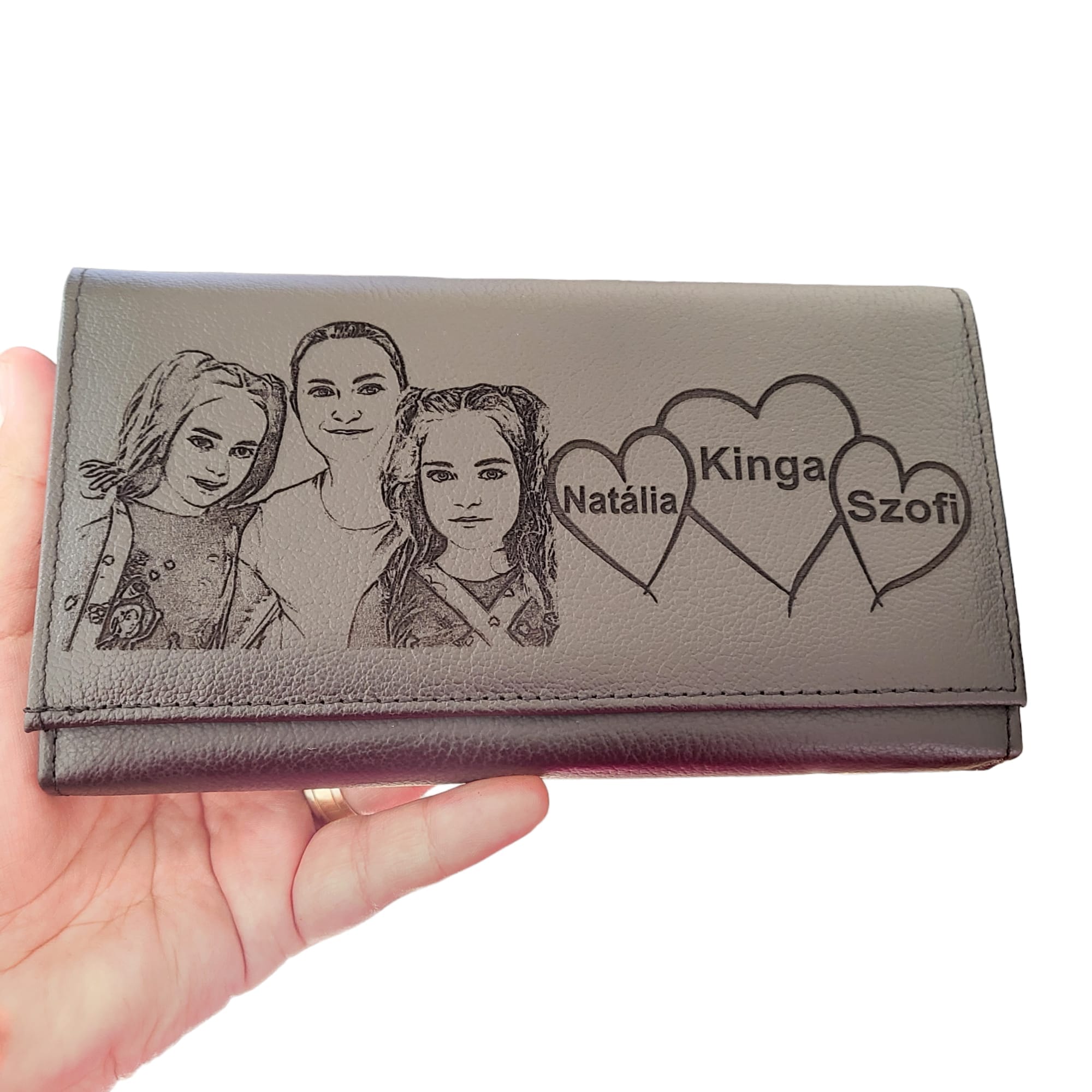 Portofel Dama Piele Naturala Negru Personalizat Cu Poza Si Inimioare