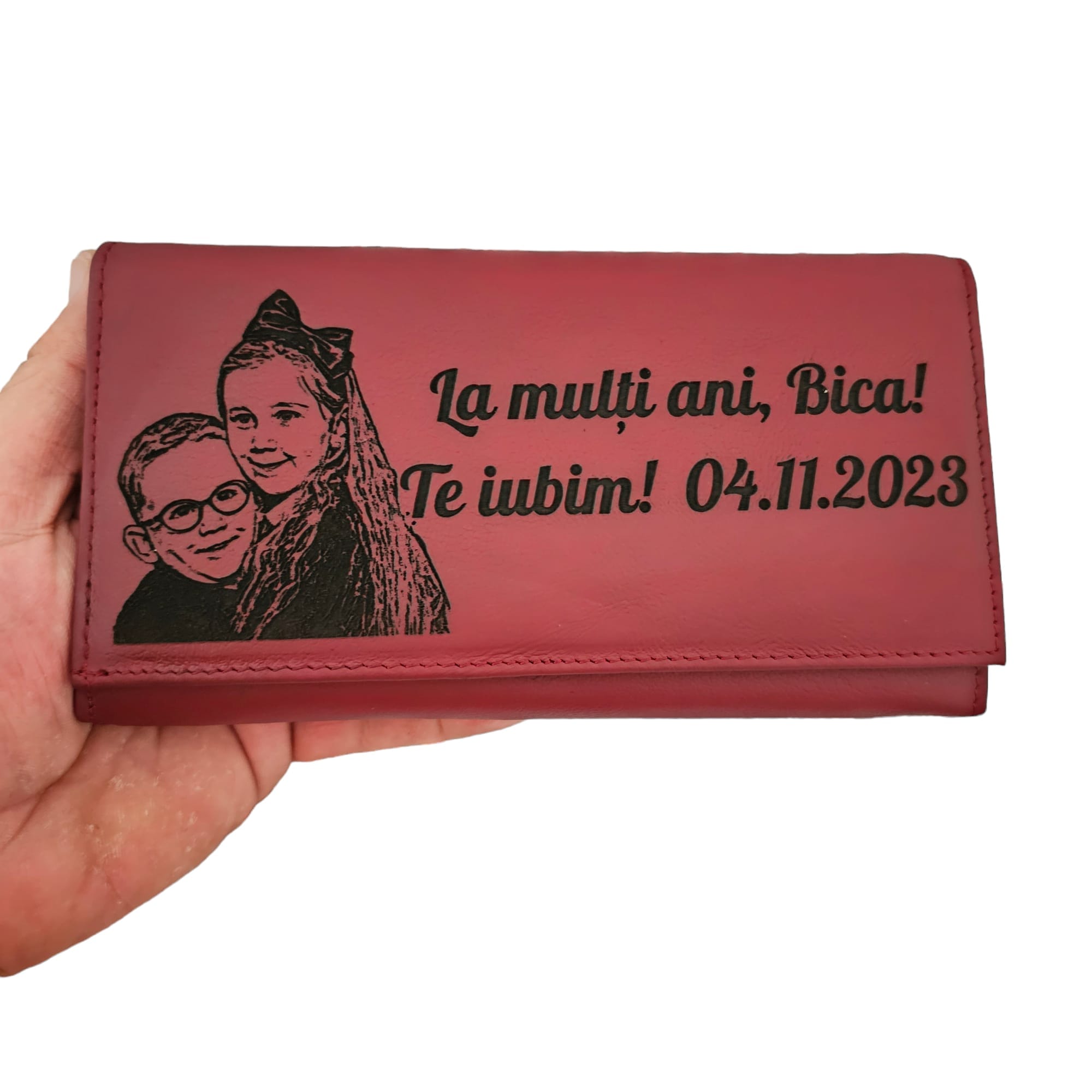 Portofel Dama Piele Naturala Rosu La Multi Ani