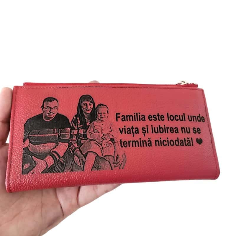 Portofel dama rosu cu fermoar Familia este locul!