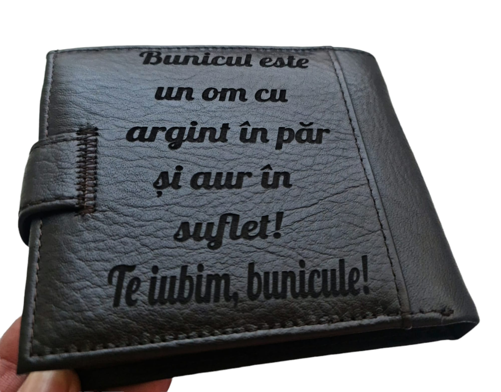 Portofel Negru Cu Capsa Personalizat Te Iubim Bunicule