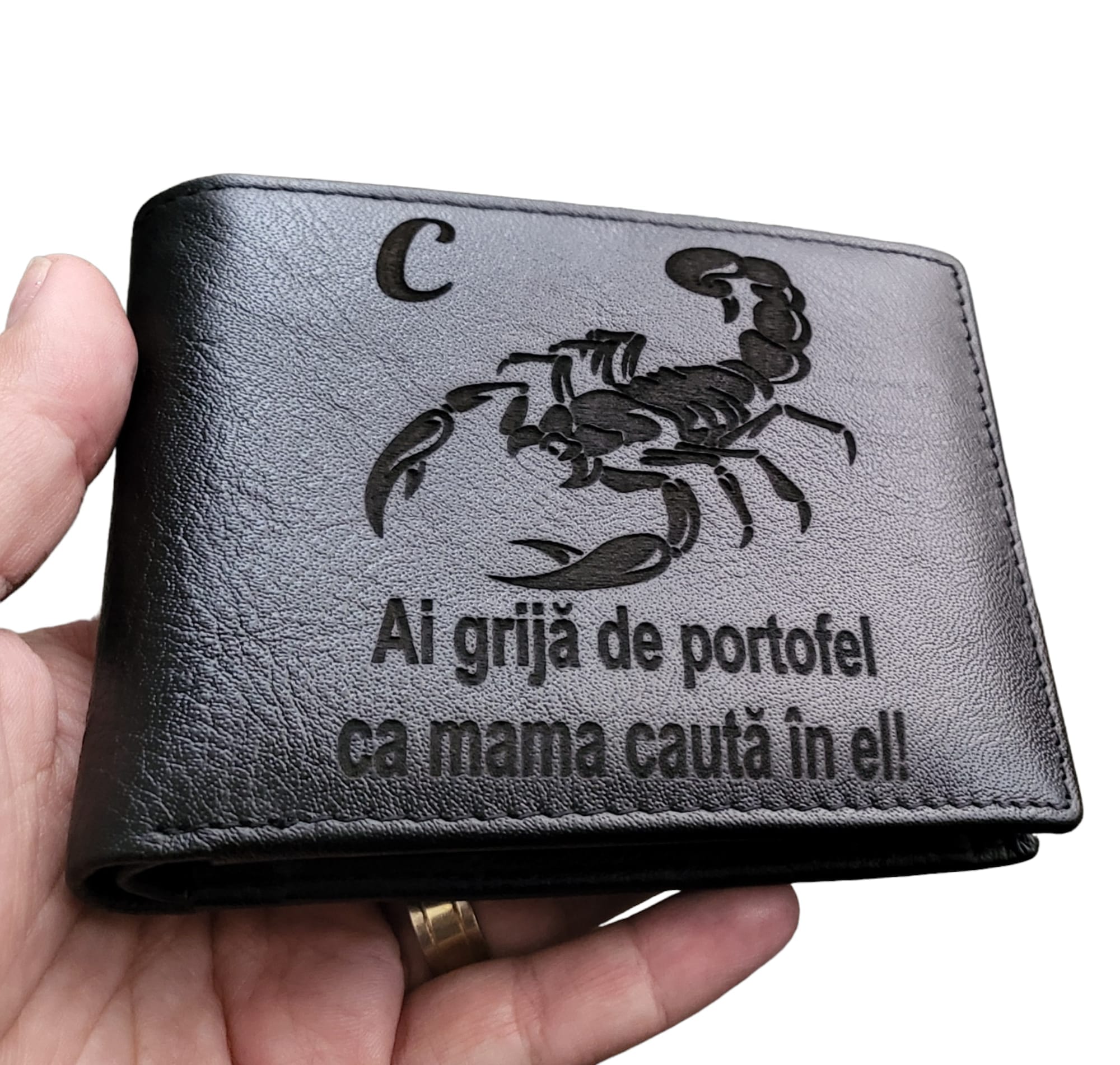 Portofel Negru Fara Capsa Personalizat Zodia Scorpion