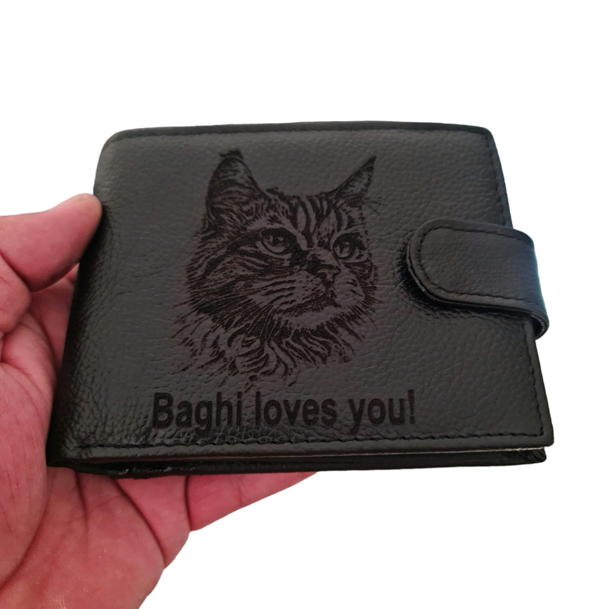 Portofel negru piele naturala negru cu capsa Pisica