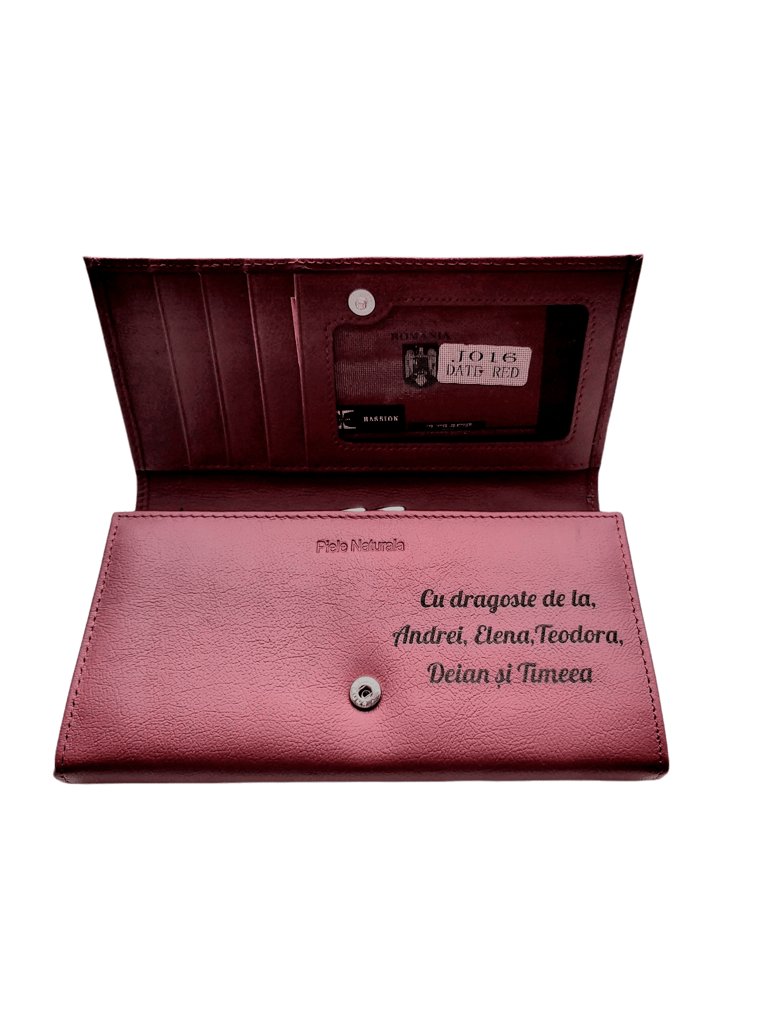 Portofel Personalizat ‘Cu dragoste’, dama, piele naturala, rosu