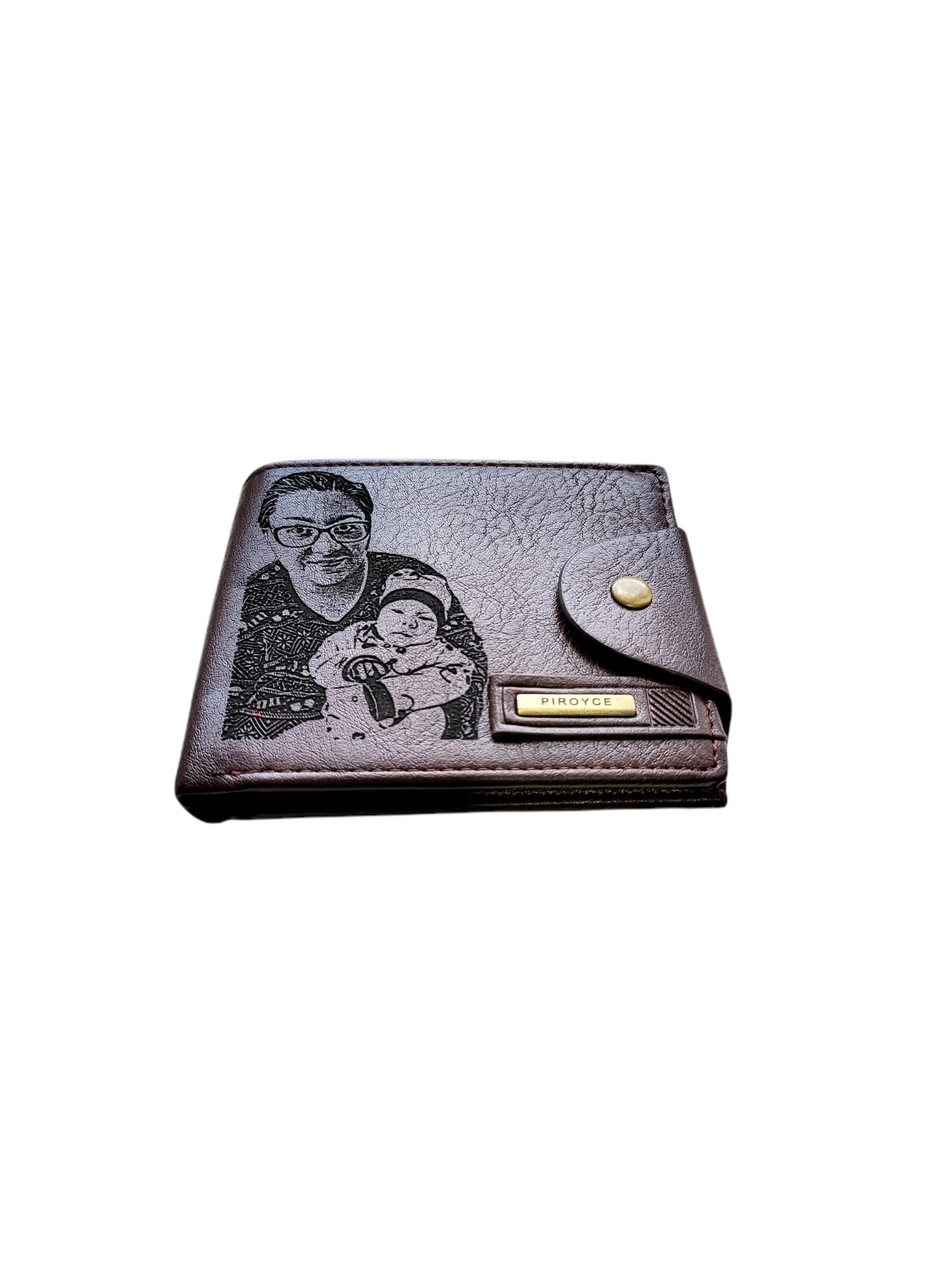 Portofel Personalizat cu poza e11, barbati, piele , cu capsa, maro,
