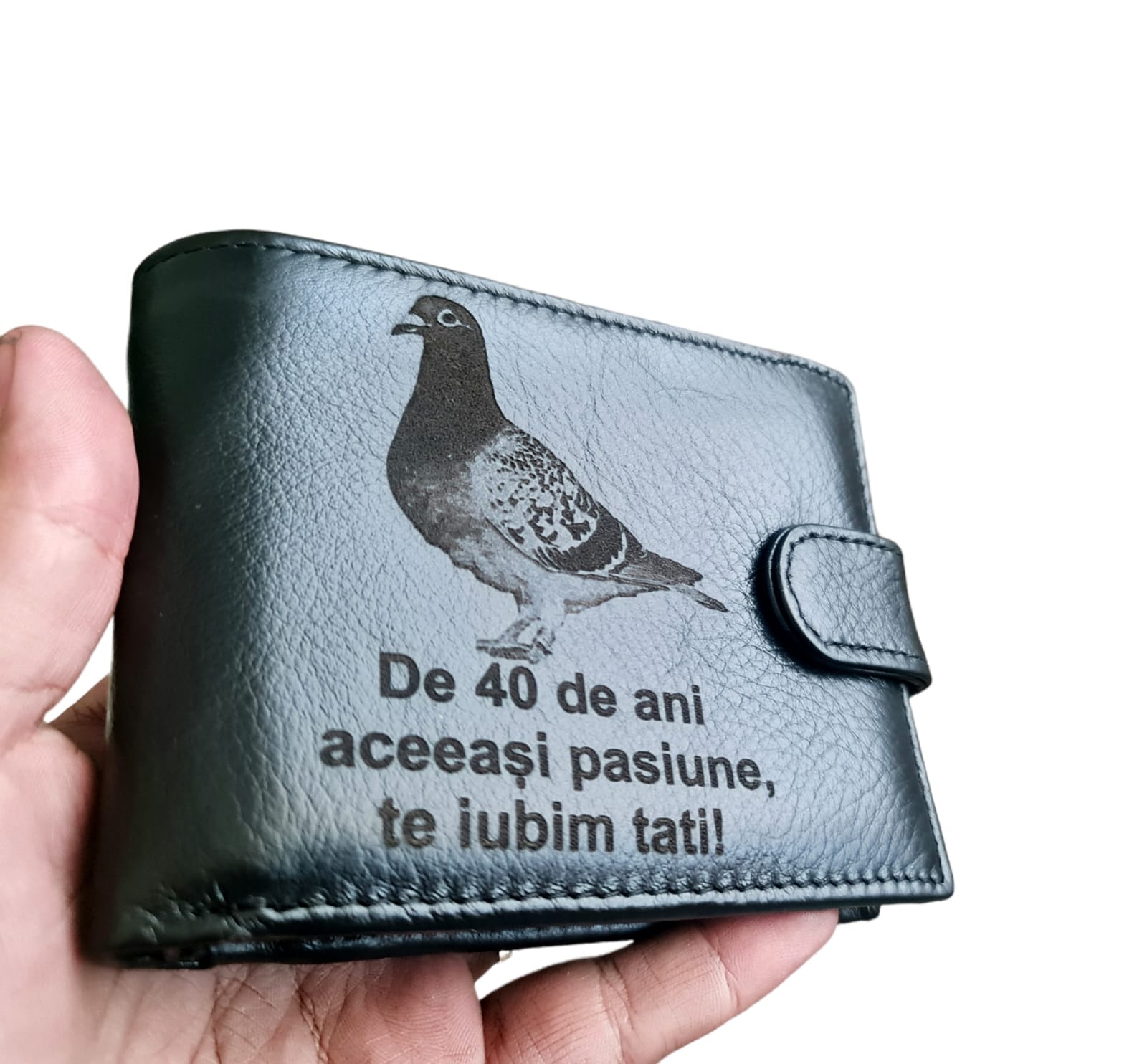Portofel Personalizat ‘de 40 De Ani Aceeasi Pasiune’, Barbati, Piele Naturala, Cu Capsa, Albastru