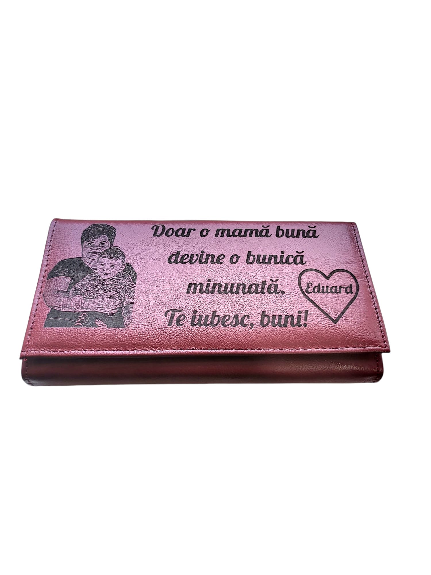 Portofel Personalizat ‘Sa nu uiti’, dama, piele naturala, rosu