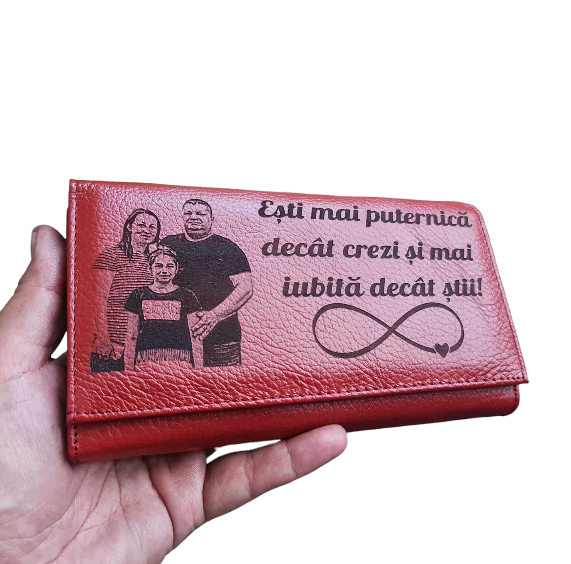 Portofel Personalizat ‘Esti mai puternica 2’, dama, piele naturala, rosu