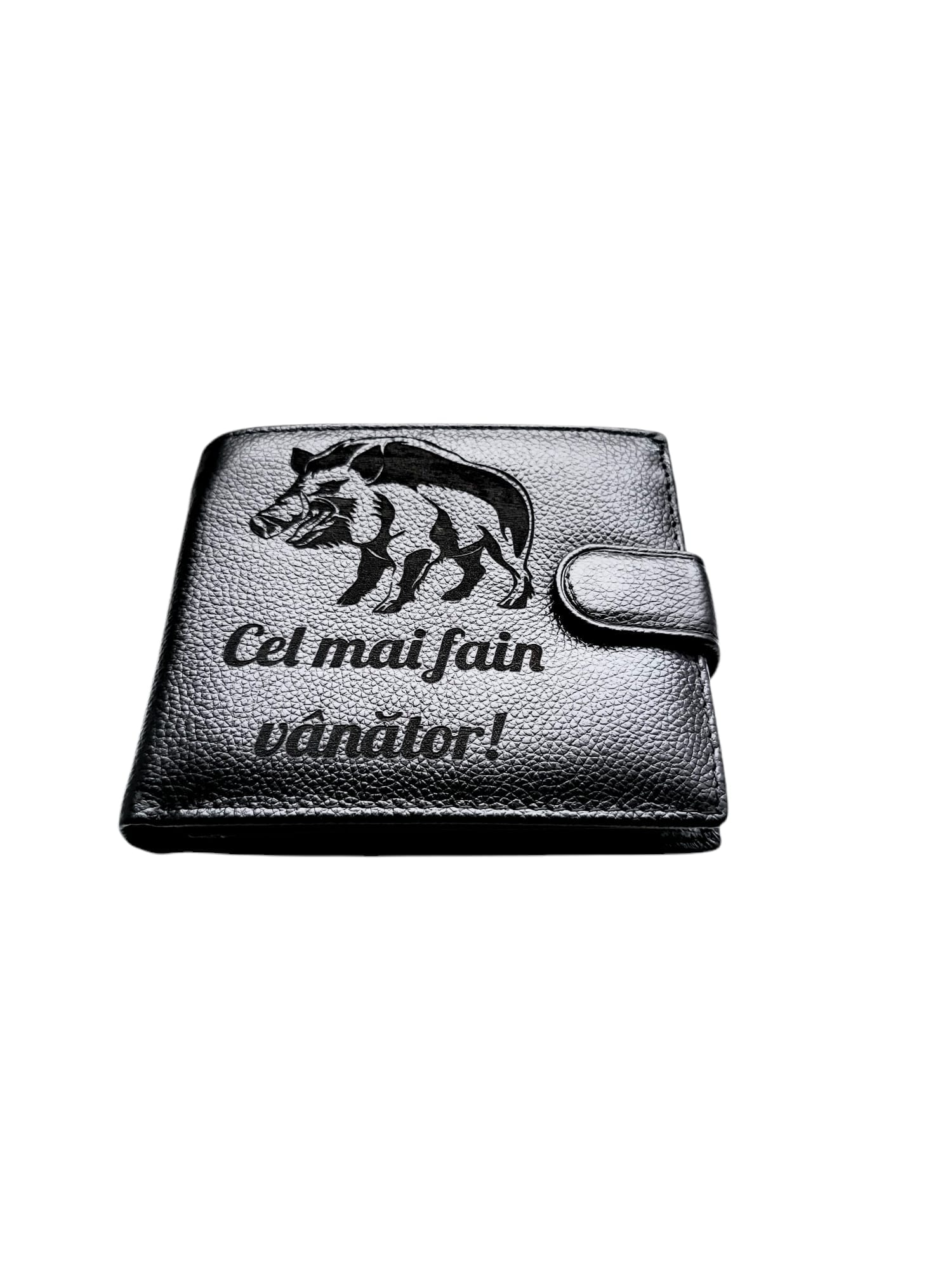 Portofel Personalizat ‘fain Vanator’, Barbati, Piele Naturala , Negru