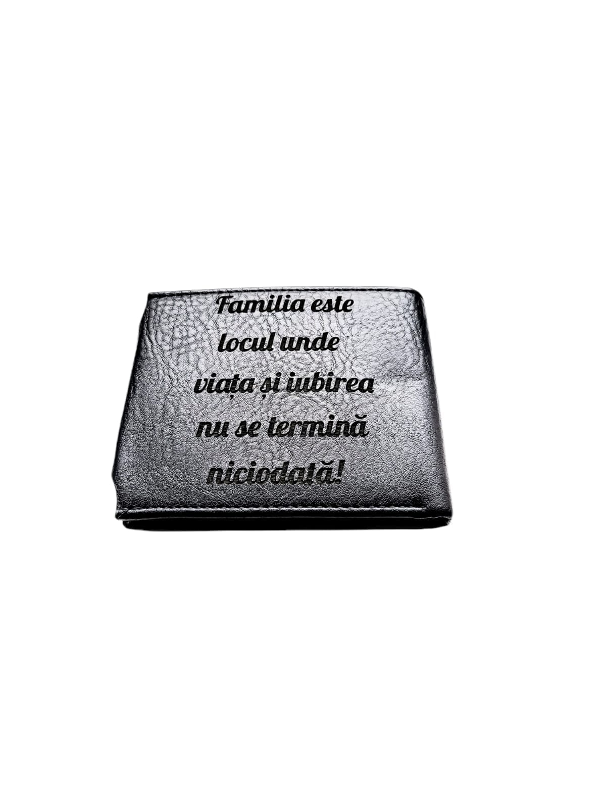 Portofel Personalizat ‘Familia este’, barbati, piele , cu capsa, negru,