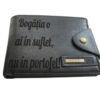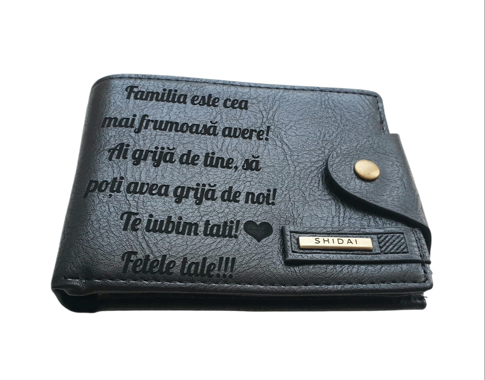 Portofel Personalizat ‘Familia este cea mai frumoasa’, barbati, piele , cu capsa, negru,
