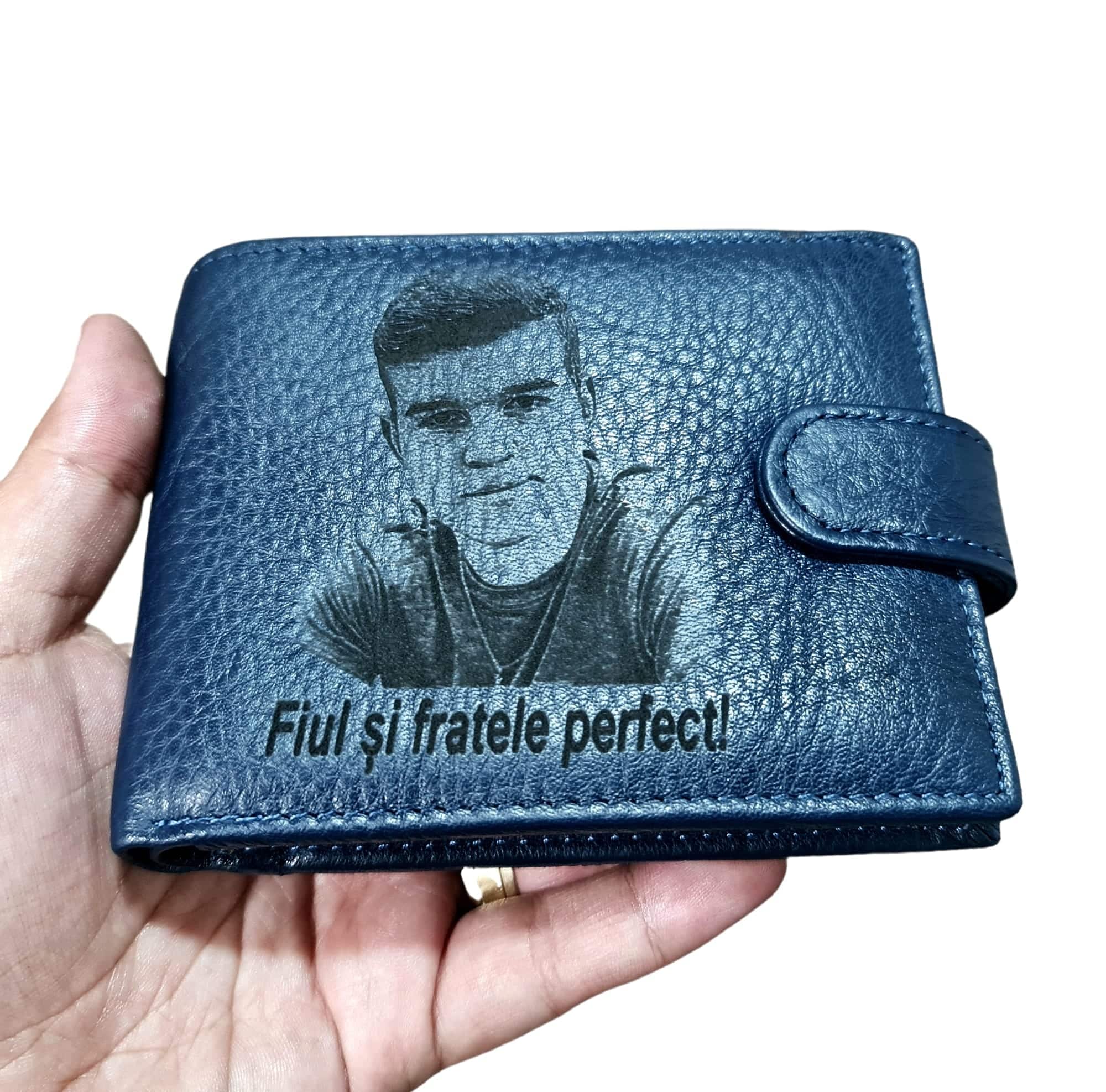Portofel Personalizat ‘Fiul si fratele perfect’, barbati, piele naturala , albastru