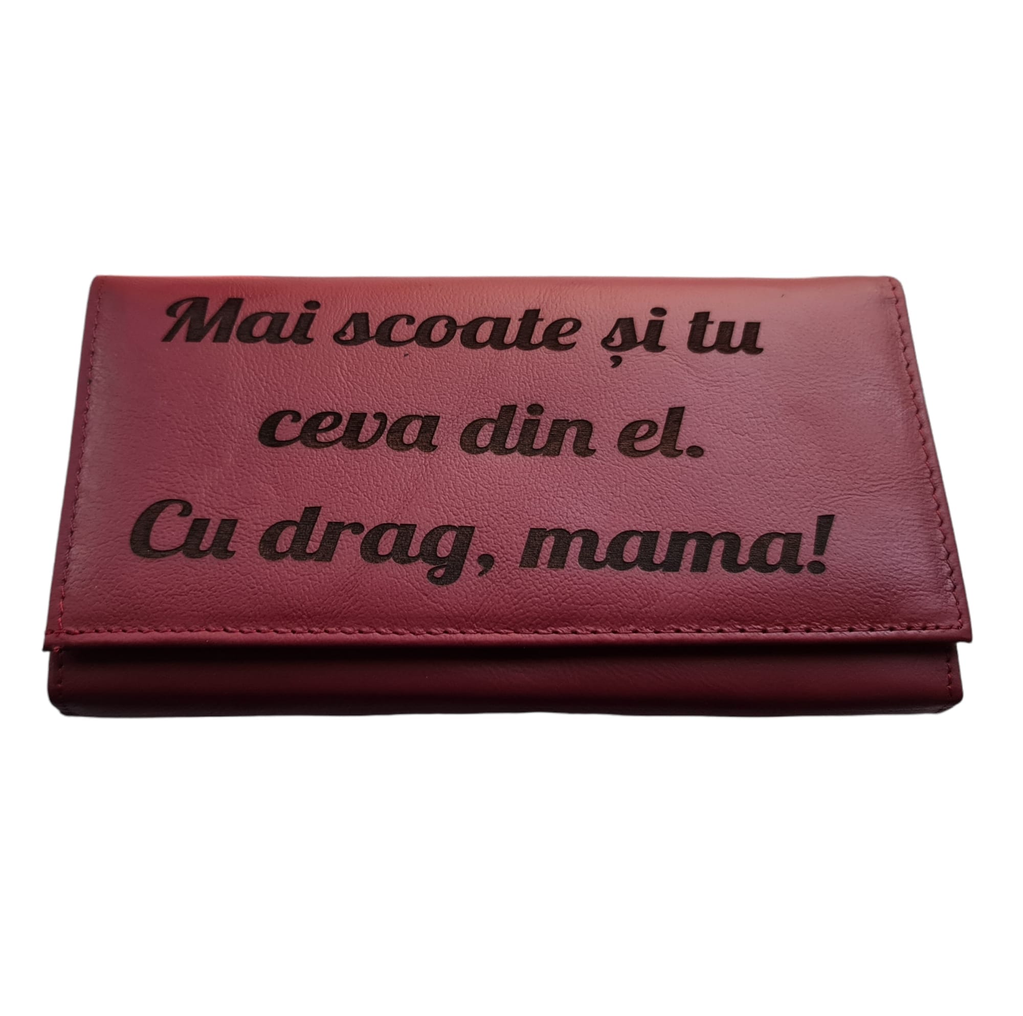 Portofel Personalizat ‘Mai scoate si tu ceva’, dama, piele naturala, rosu