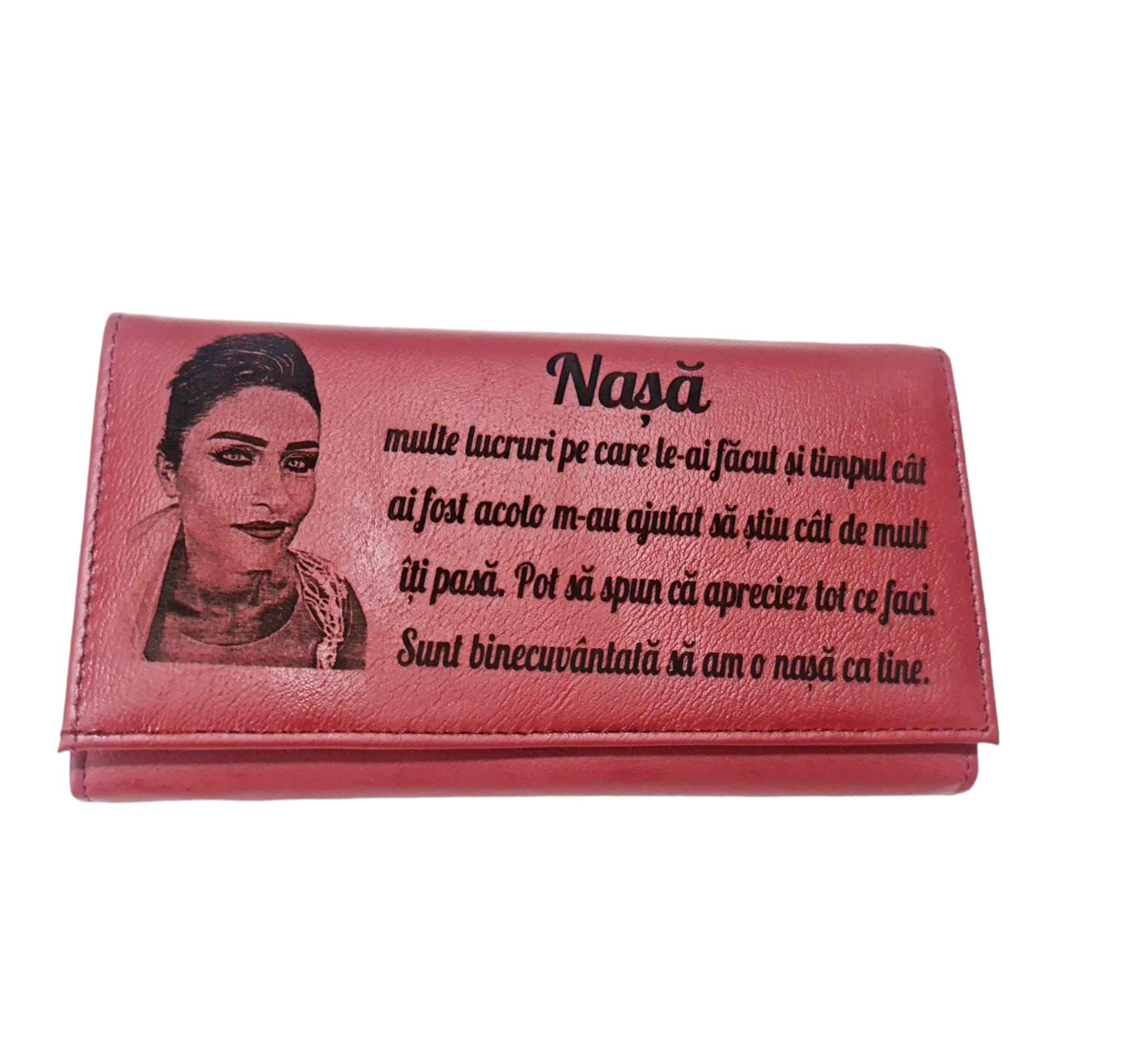 Portofel Personalizat ‘Nasa multe lucuri’, dama, piele naturala, rosu