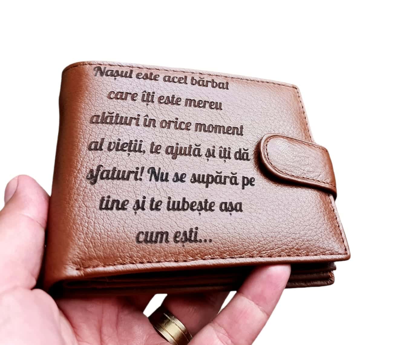Portofel Personalizat ‘Nasul e acel barbat’, barbati, piele naturala , maro