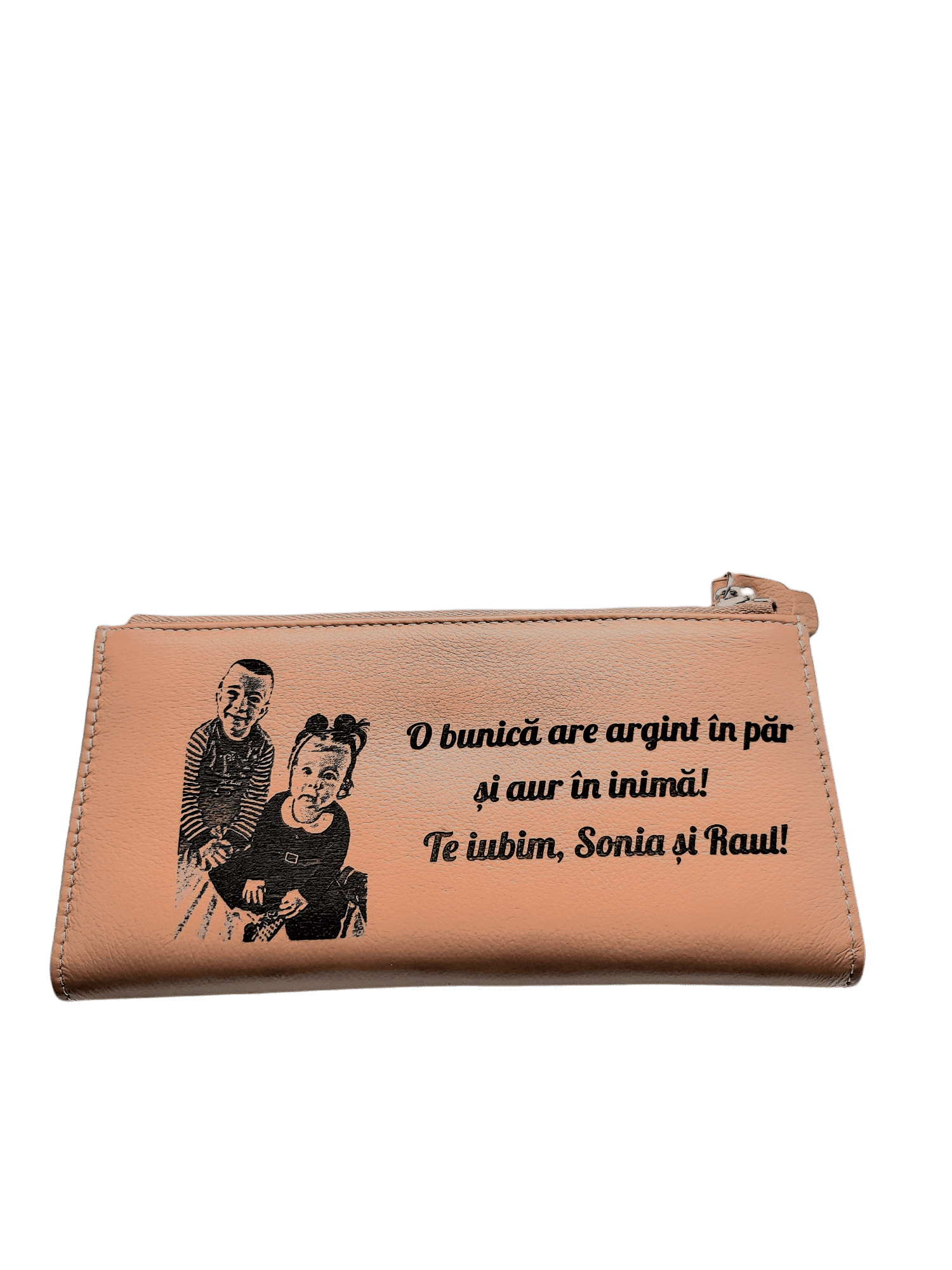 Portofel Personalizat ‘O bunica’, dama, piele naturala, maro
