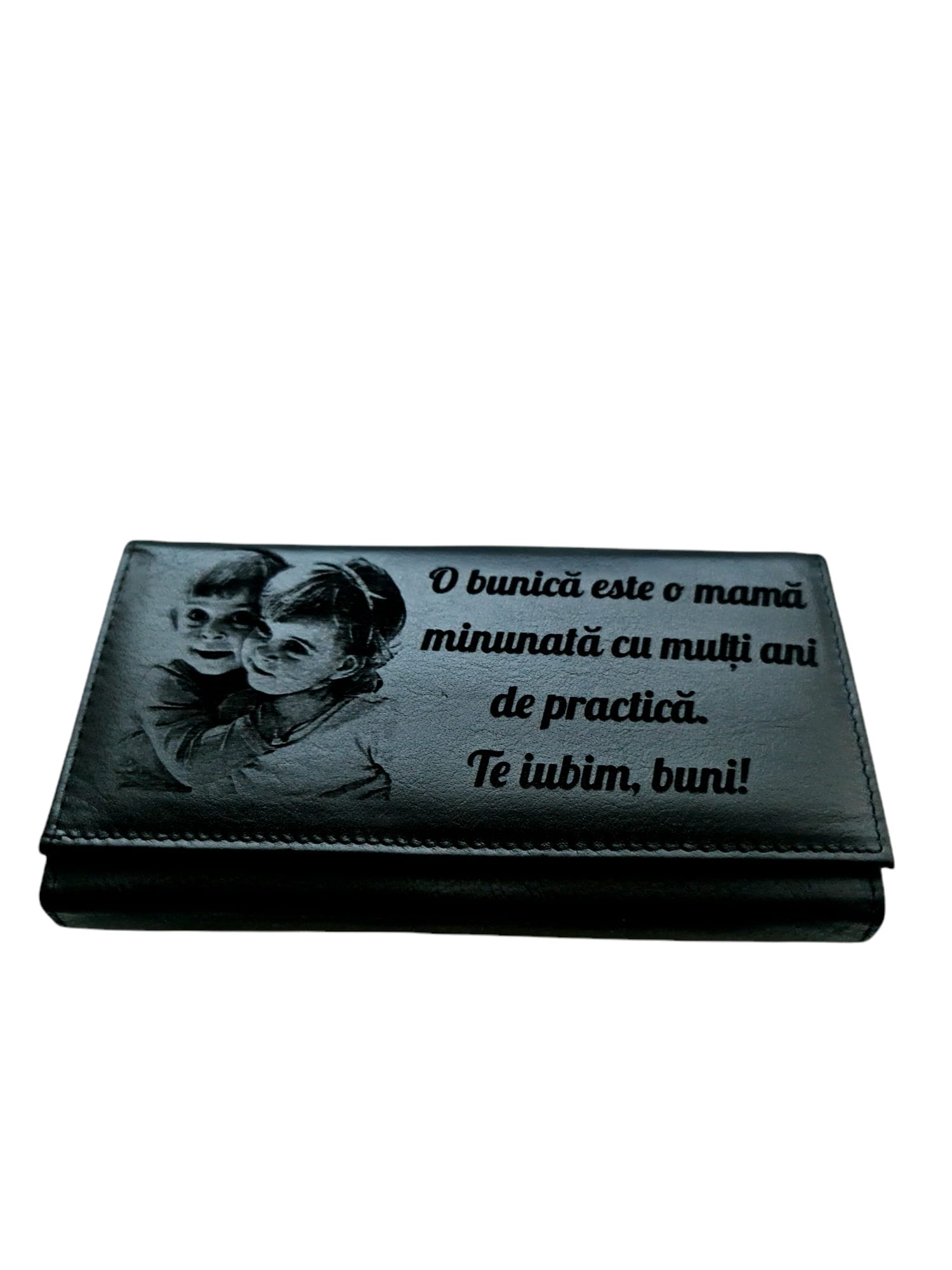 Portofel Personalizat ‘O bunica’ , dama, piele naturala, negru