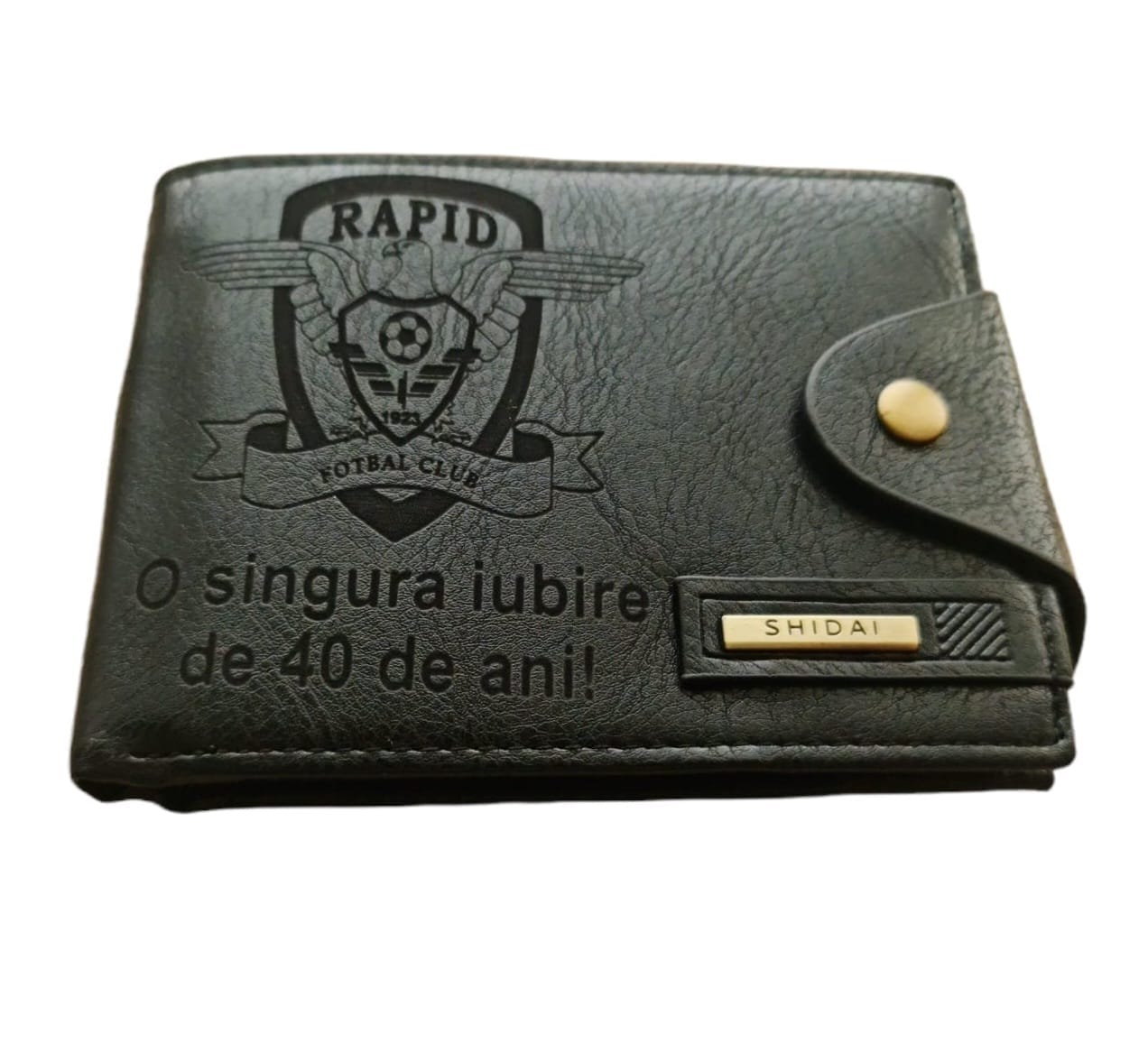 Portofel Personalizat ‘O singura iubire’, piele , cu capsa, negru,