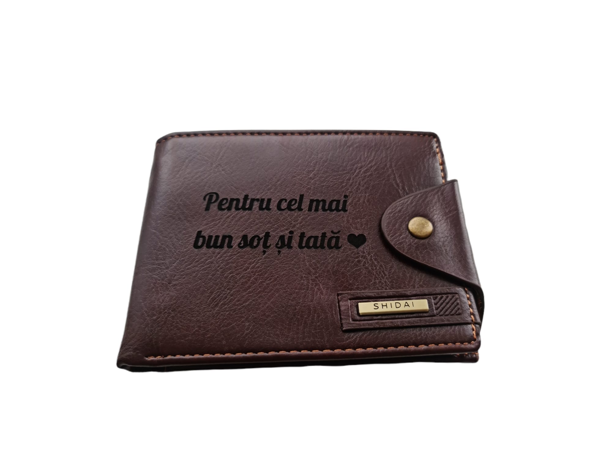 Portofel Personalizat ‘Pentru cel mai bun sot’, barbati, piele , cu capsa, maro,