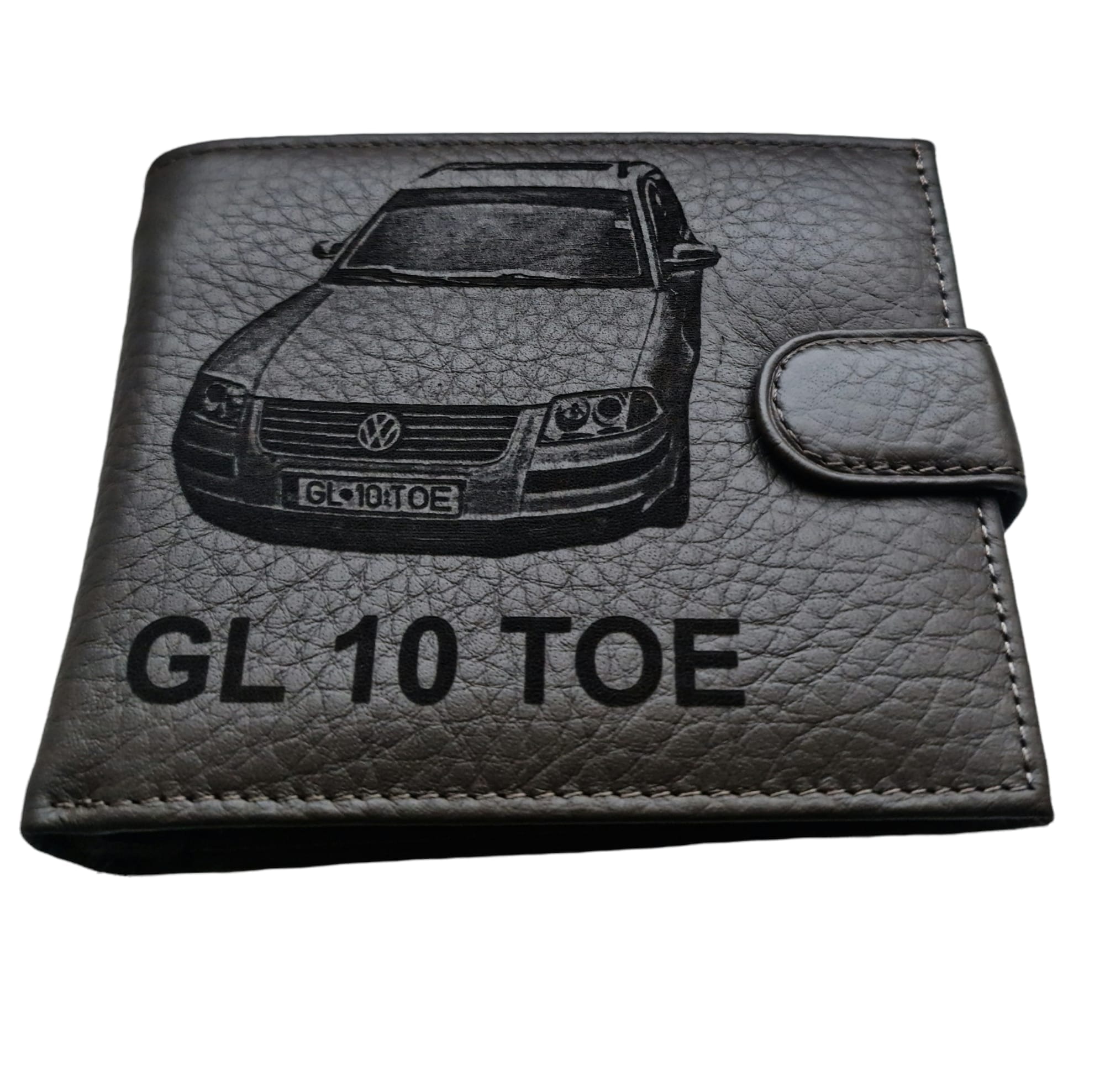 Portofel Personalizat Piele Naturala Gri Cu Masina Si Nr Auto