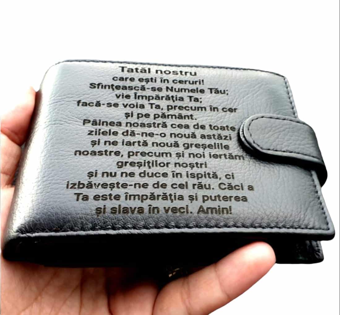 Portofel Personalizat ‘Rugaciunea Tatal nostru’, barbati, piele naturala , negru