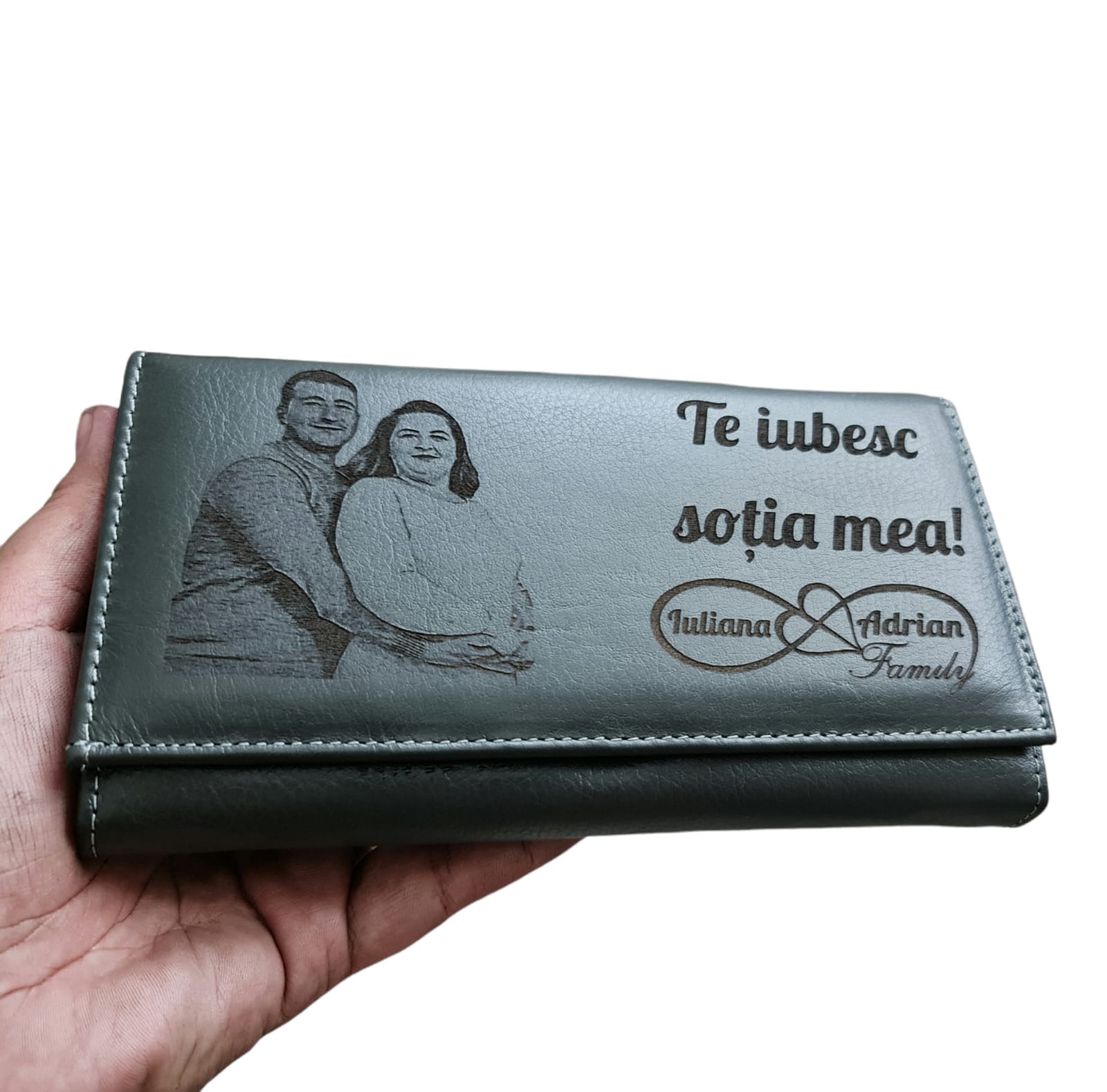 Portofel Personalizat ‘te Iubesc Sotia Mea’, Dama, Piele Naturala, Negru