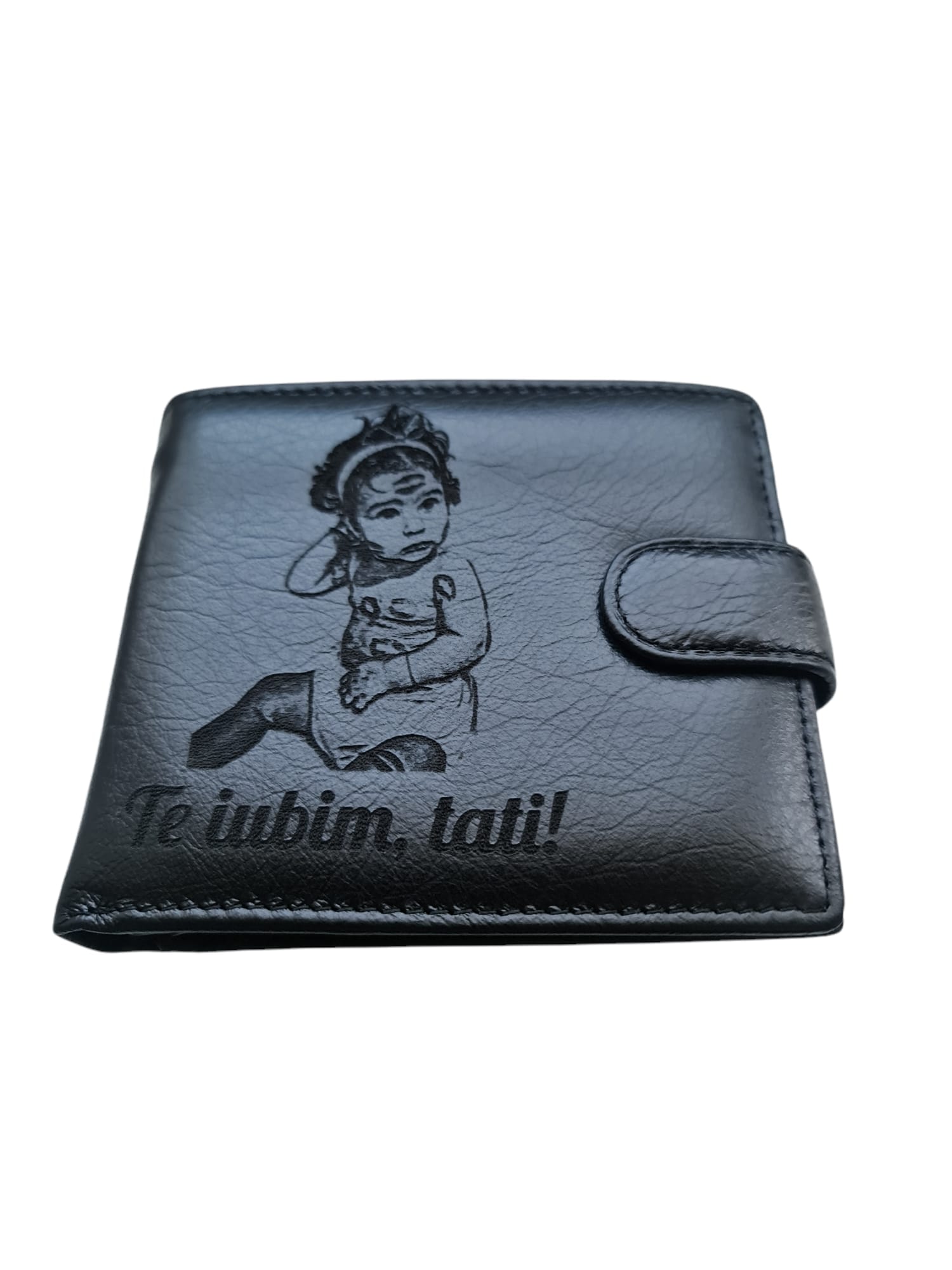 Portofel Personalizat ‘Te iubim Tati’, barbati, piele naturala , negru
