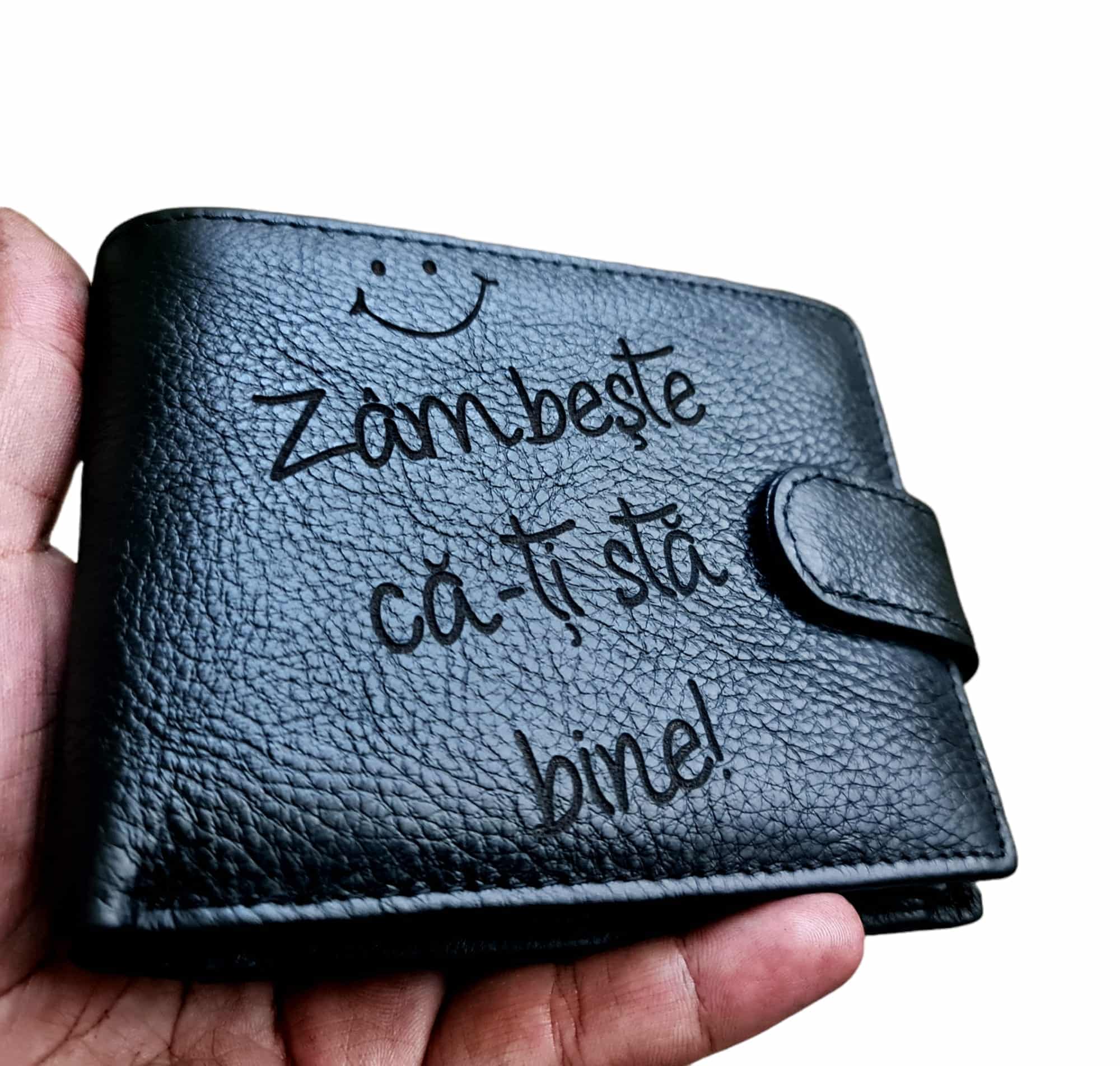 Portofel Personalizat ‘zambeste Ca-ti Sta Bine’, Barbati, Piele Naturala , Negru